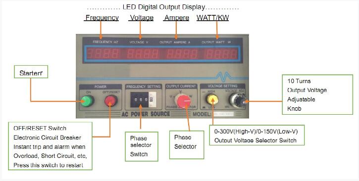 5. Easy-to-read LED’s display Output Voltage Frequency, Ampere,